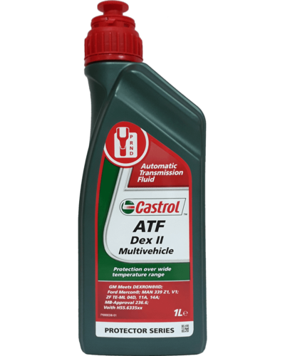 Castrol ATF Dex II Multivehicle - это жидкость для автоматической трансмиссии, которая может использоваться и в узлах рулевого управления с усилителем многих типов транспортных средств, в которых требуются характеристики Dexron IID или Mercon. Он также одобрен для использования во многих европейских сверхмощных автоматических коробках передач и Mercedes Benz.